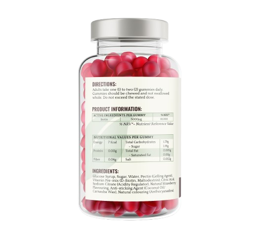 Biotin 5000μg - 60 Natural Strawberry Flavour Gummies