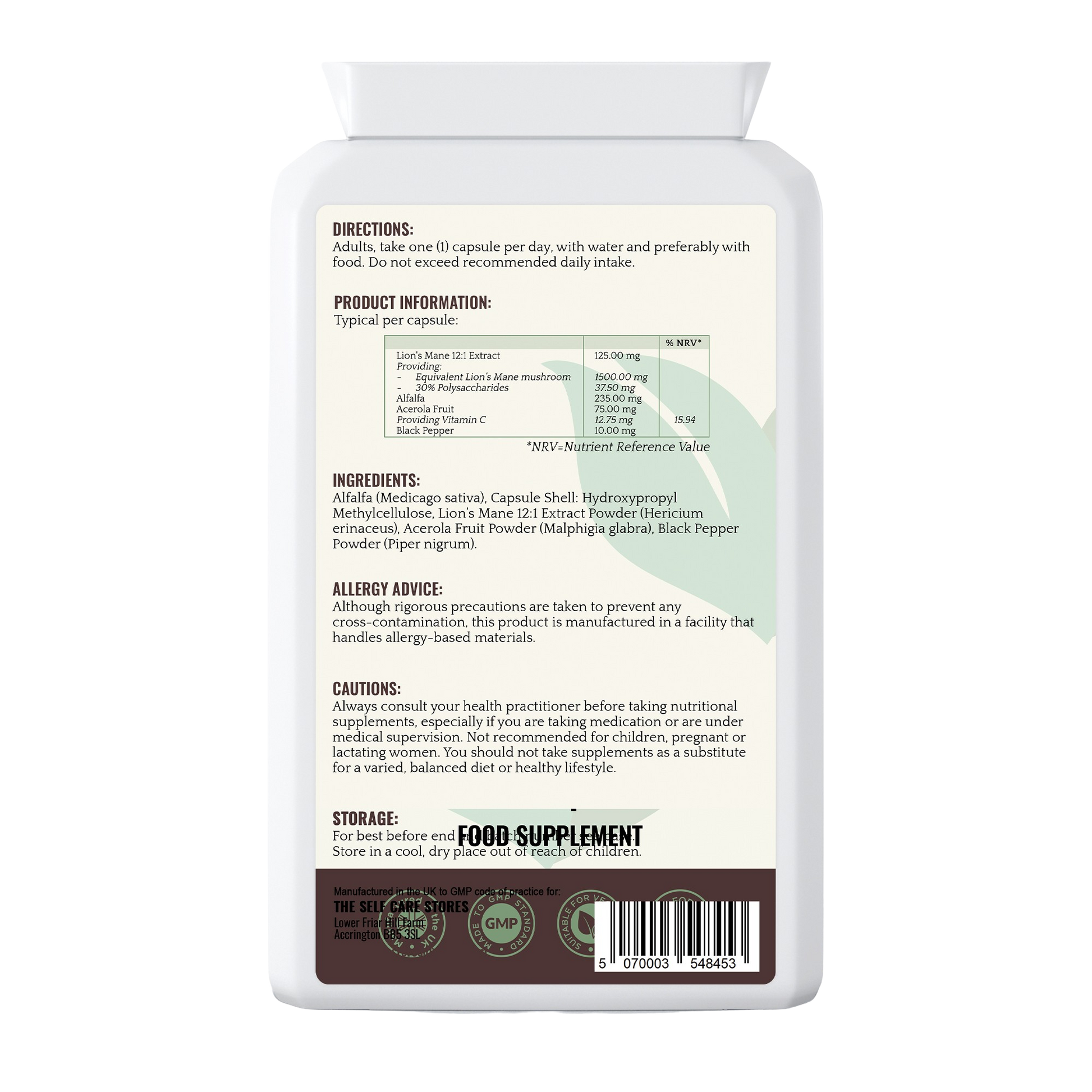 Why Choose This Supplement: This supplement offers a synergistic blend of natural ingredients aimed at supporting cognitive and immune health. The combination of Lion's Mane for cognitive support, Acerola for immune enhancement, and Black Pepper for improved absorption makes it a comprehensive choice for those seeking to boost mental clarity and overall well-being.