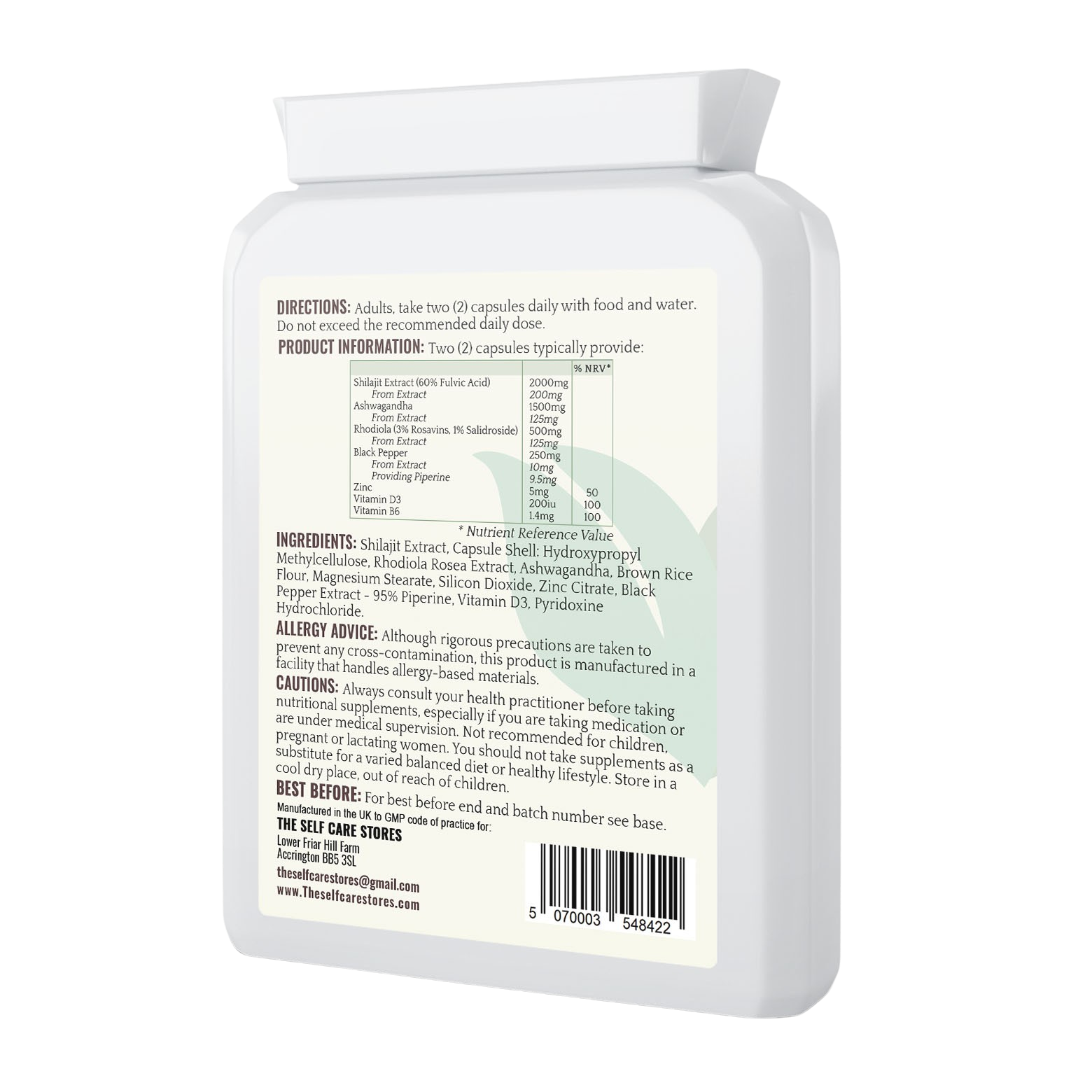 Rhodiola Rosea: This herb is known for its potential to boost energy levels and combat fatigue. It works synergistically with shilajit to enhance natural energy and endurance.